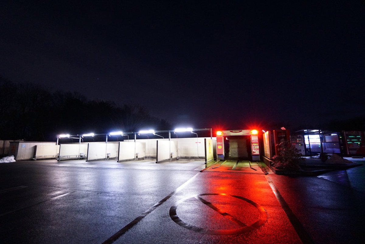 道ろじん 仙台市は国見峠のコイン洗車場 誰も居ない夜の洗車場 そして不気味な存在感を醸し出す洗車機 寒さで凍るのを防ぐために高頻度で何かを話しながらピッピッピーって音を放ちブラシが回転している